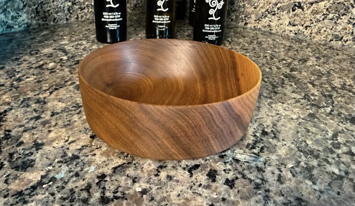 Bring warmth and craftsmanship to your table with this hand-turned walnut bowl. Carefully shaped on the lathe and finished by hand, each bowl highlights the natural beauty and unique grain patterns of solid walnut—no two are ever the same.